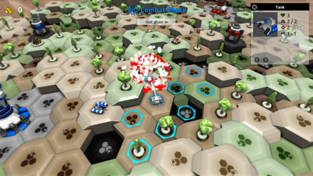 Battlemass is a turn-based strategy game where matches are played on a map consisting of tiles, and in turns of 3 phases – combat, harvest and build. The goal is to destroy your opponent’s Main Building. You will mine the map’s tiles, causing them to lower and altering the possible tiles that units can move to and attack from.